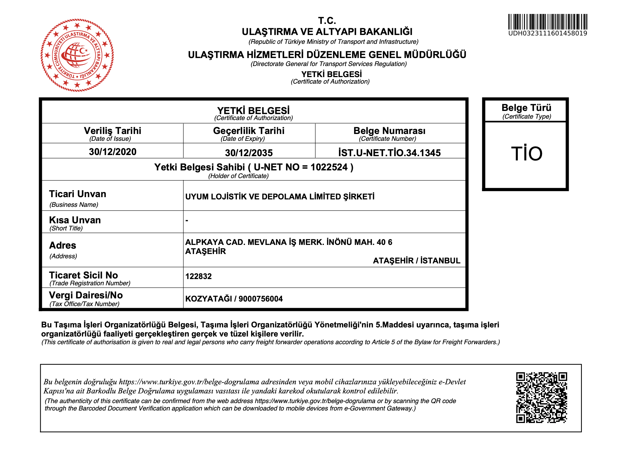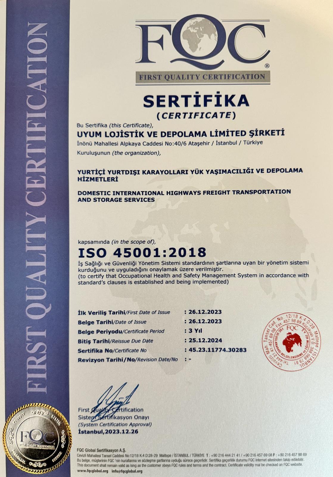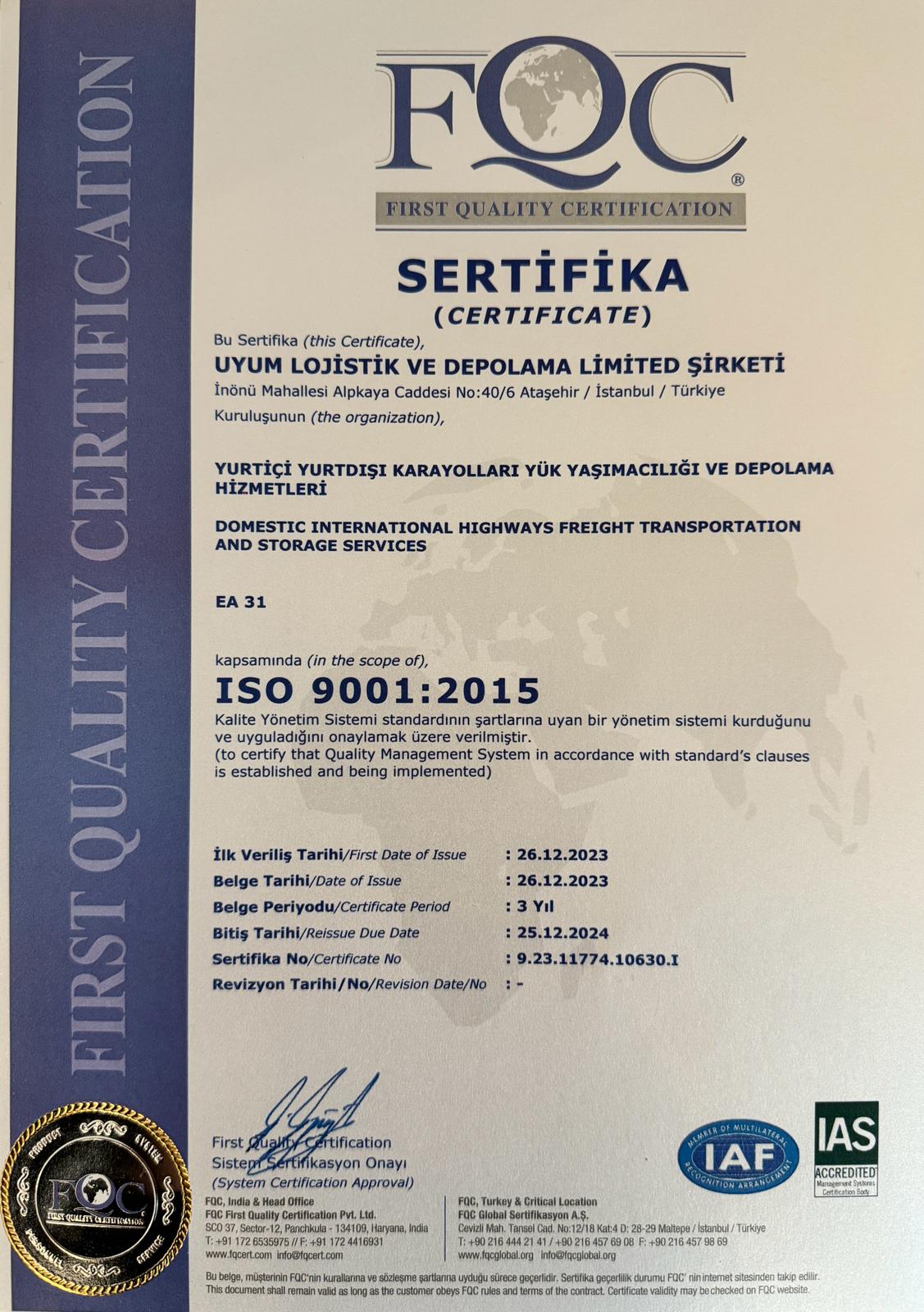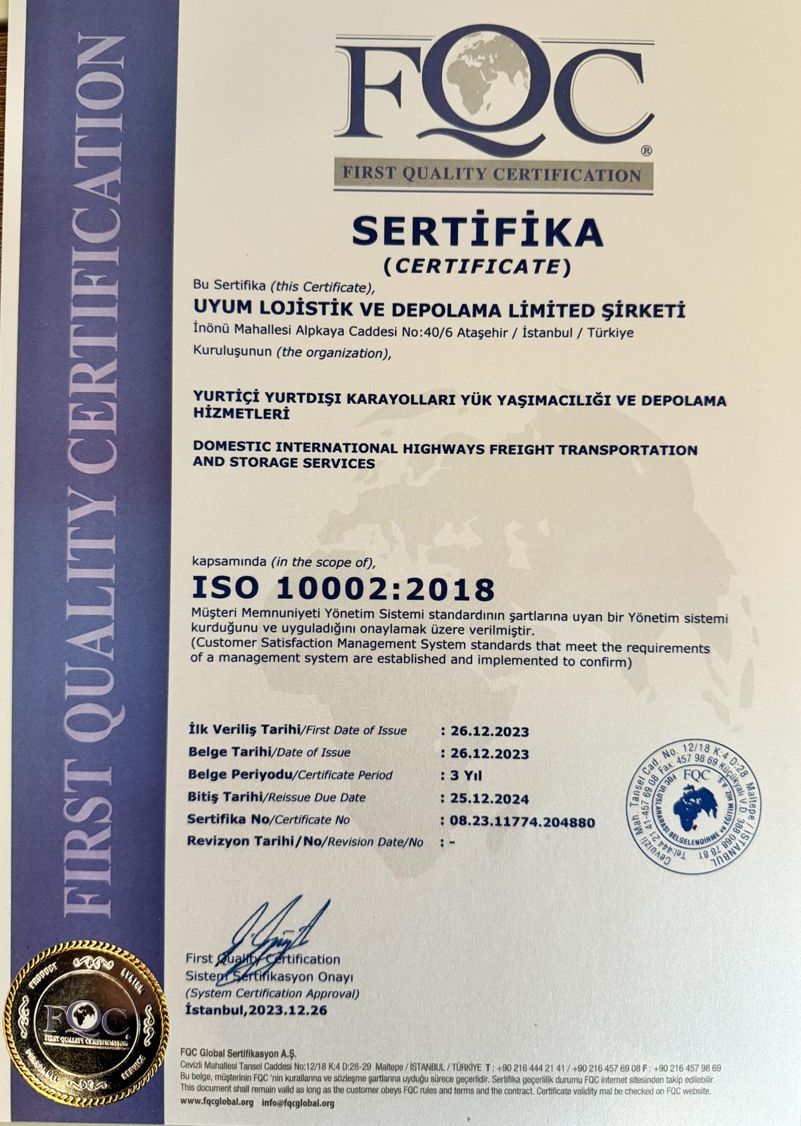 UYUM LOJİSTİK VE DEPOLAMA LİMİTED ŞİRKETİ